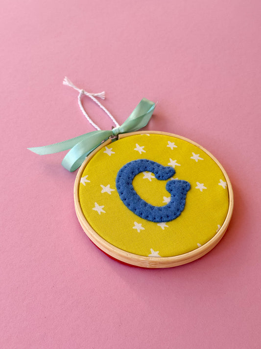 "G" Initial Hand Embroidered Felt Ornament | 4" Hoop