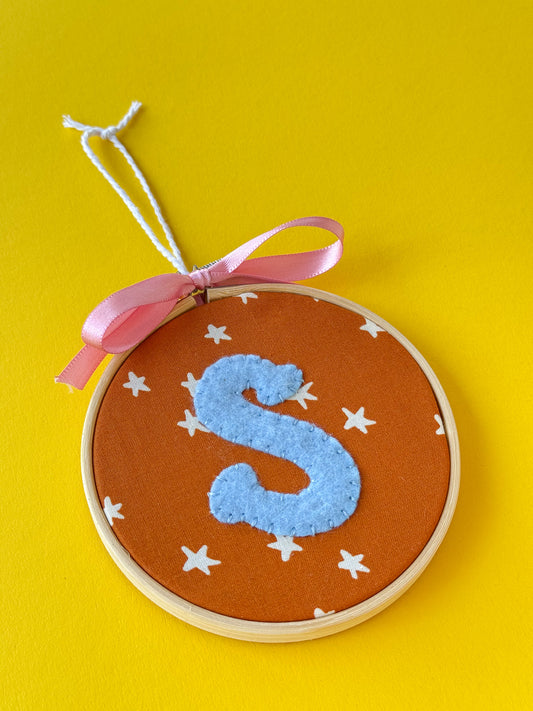 "S" Initial Hand Embroidered Felt Ornament | 4" Hoop