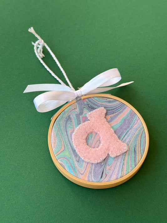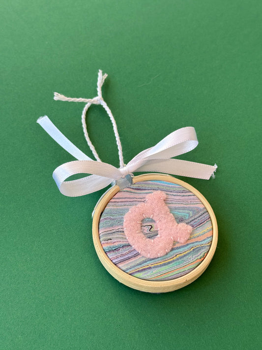 "A" Initial Hand Embroidered Felt Ornament | 2" Hoop