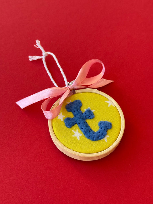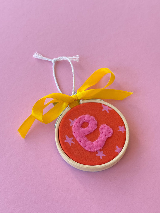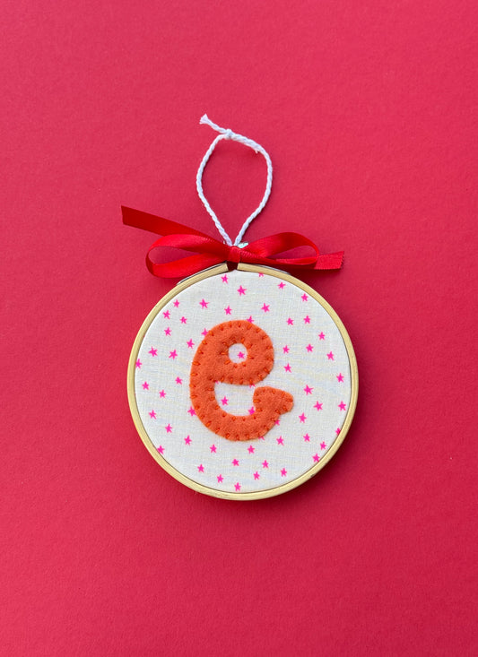 "E" Initial Hand Embroidered Felt Ornament | 2" Hoop
