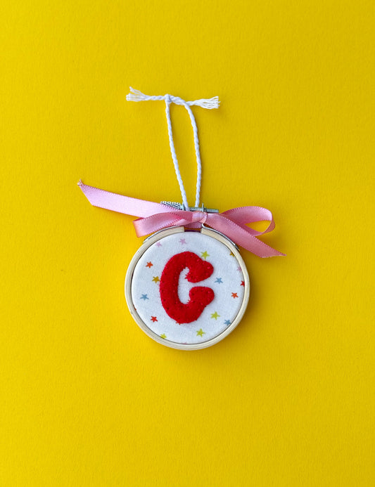 "C" Initial Hand Embroidered Felt Ornament | 2" Hoop