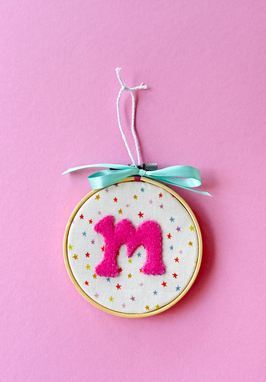 "M" Initial Hand Embroidered Felt Ornament | 4"