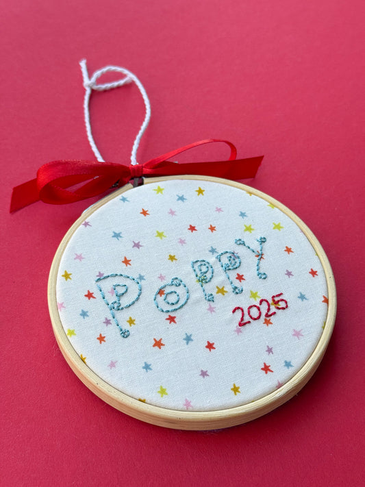 Kids Handwriting Custom Hand Embroidered Ornament | 3" Hoop