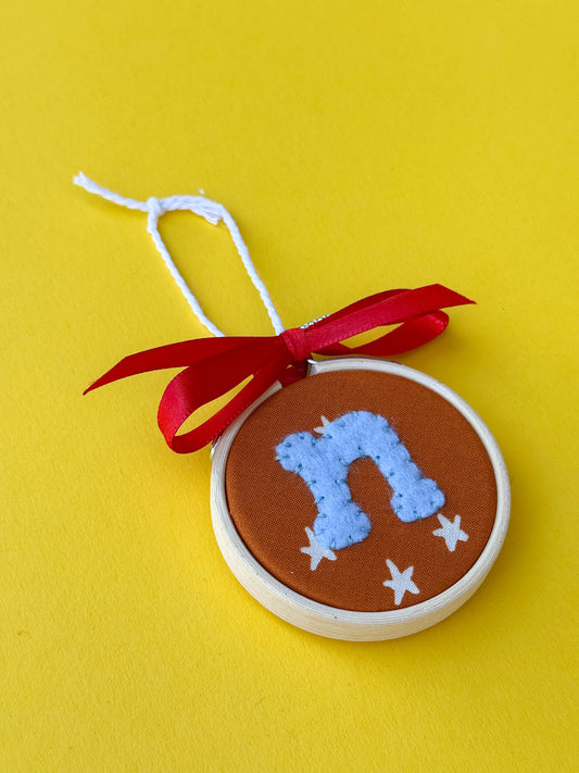 "N" Initial Hand Embroidered Felt Ornament | 2" Hoop