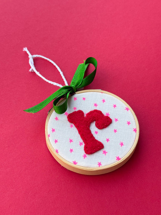 "T" Initial Hand Embroidered Felt Ornament | 2" Hoop
