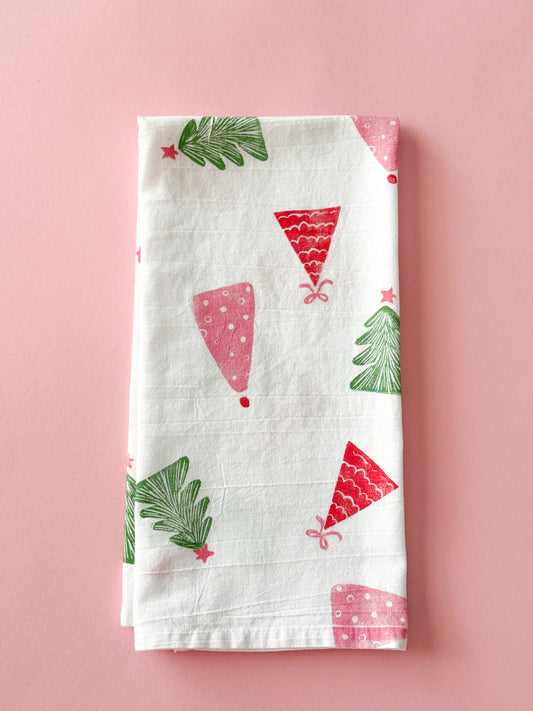 Holiday Trees Block Print Tea Towel