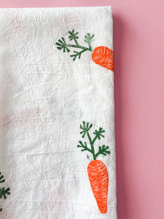 Carrot Block Print Tea Towel