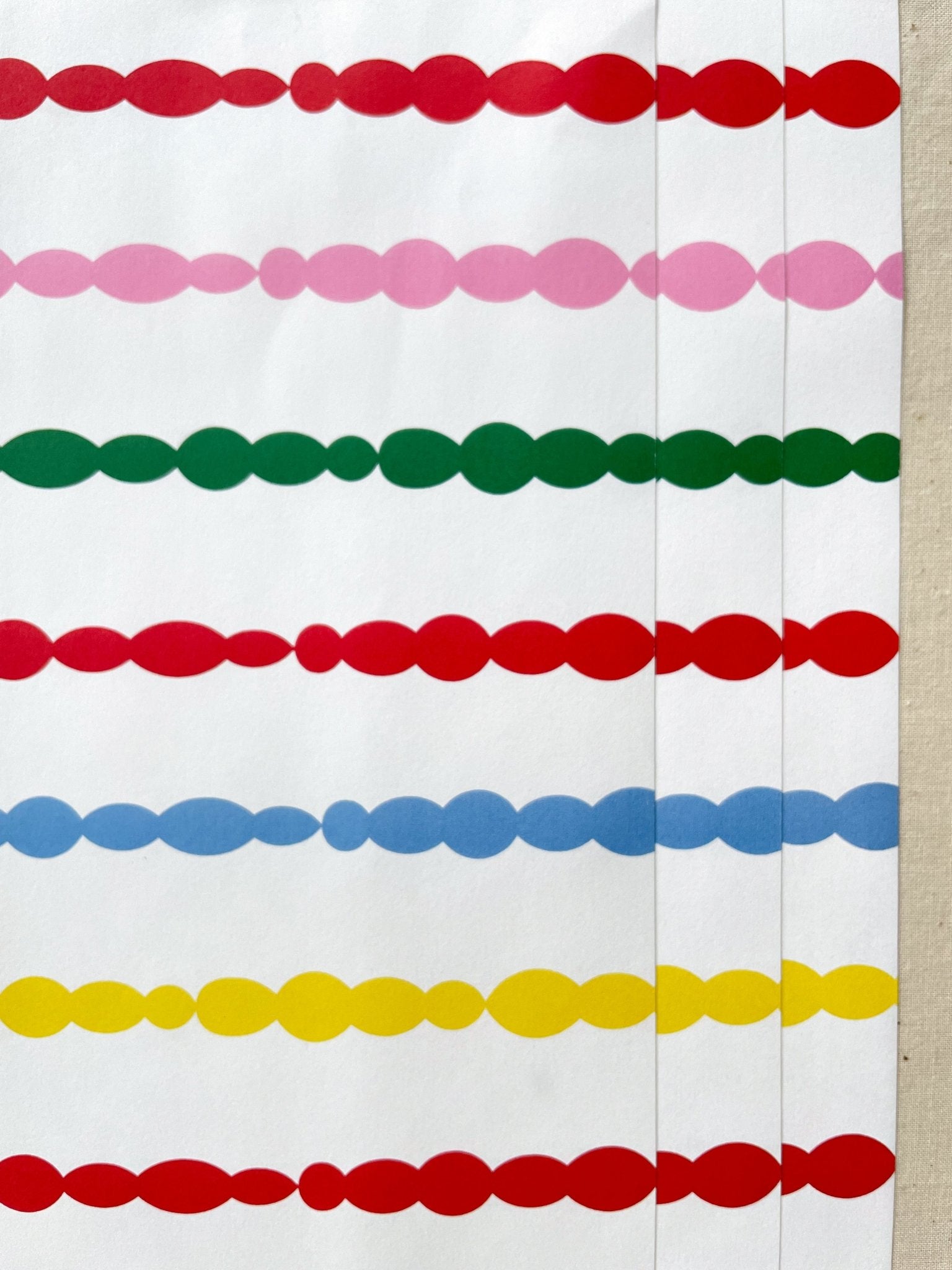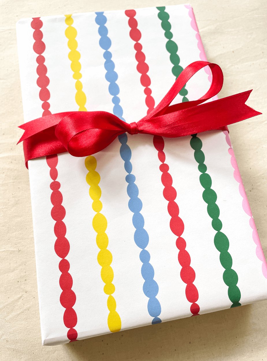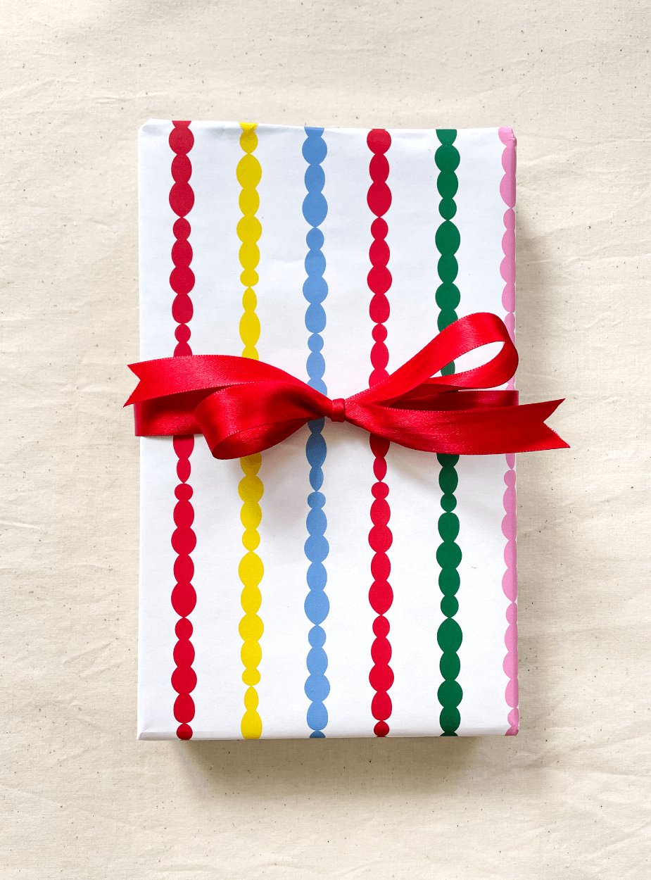Colorful beads wrapping paper inspired by the wooden bead decorations that dance around the Christmas tree