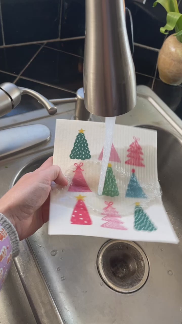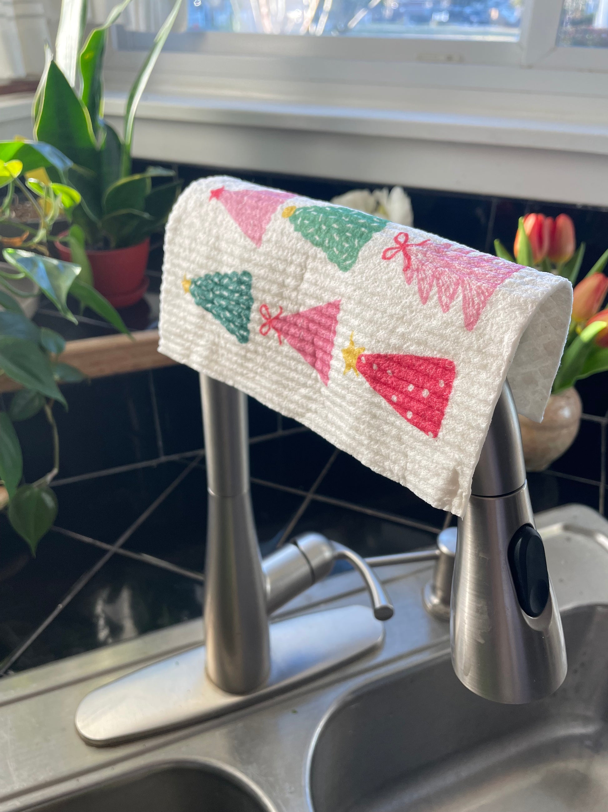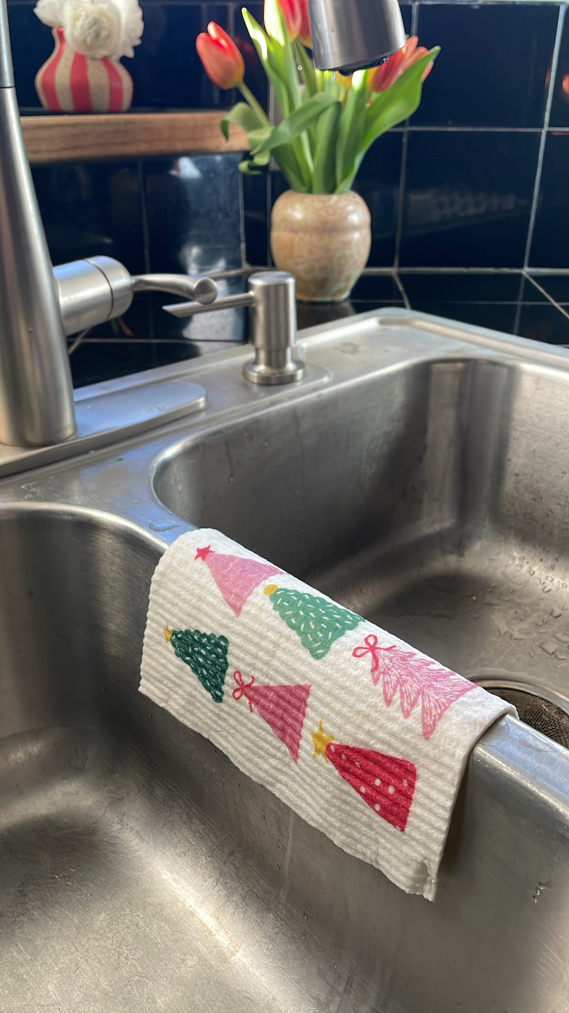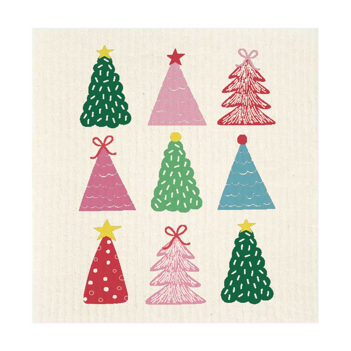 Brighten up your cleaning this holiday season with this colorful Swedish Dishcloth featuring our block print-inspired Christmas trees!
